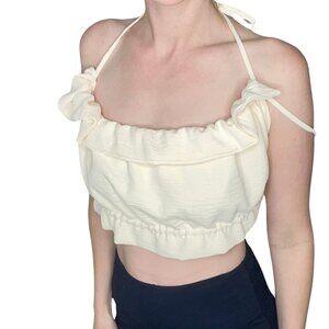 Resortwear Off-White Cream Off the Cold Shoulder Ruffle Halter Crop Top Large