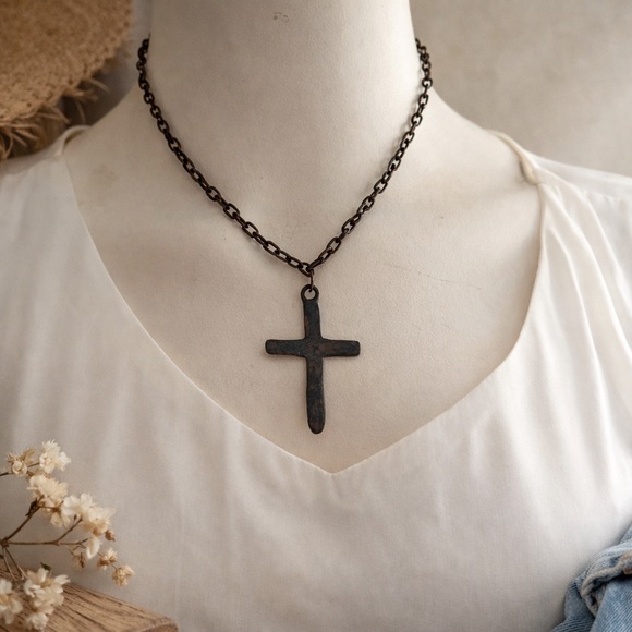 Elegant, delicate, and simple rustic cross on a simple chain. Perfect for layering perfect on its own.