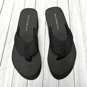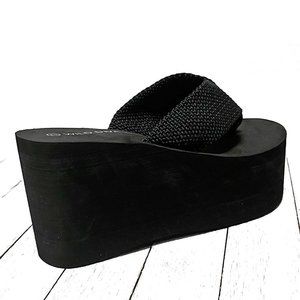 Restocked Black Foam Platform Wedge Flip Flop Sandals