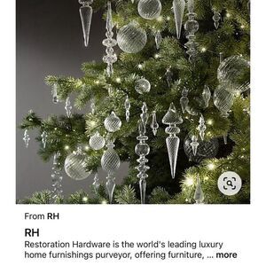 Restoration Hardware ARTISAN Handblown Glass Christmas Ornament Clear 10" FLUTED FINIAL COLLECTION