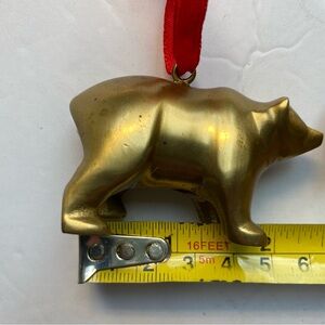 Add a touch of elegance to your holiday decor with these gold brass animal ornaments. Featuring a vibrant red ribbon, they are perfect for any festive setting.