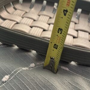 Restoration Hardware Ceramic Woven Basket With Handles RH Stamp Cream blue gray