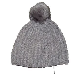 Restoration Hardware Gray Fur Trimmed Cashmere Cozy Pom Pom Beanie Hat.