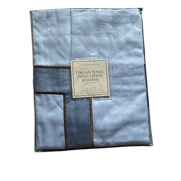 Restoration Hardware Italian Tonal Piped Sateen Sky Standard Sham Italy