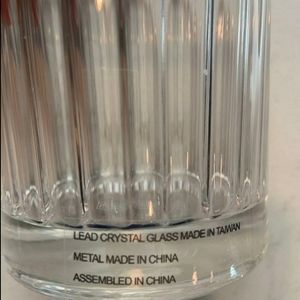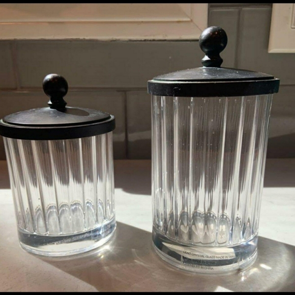 TWO Restoration Hardware Lidded Jars. Oil rubbed bronze metal lids and lead crystal. One is 5", larger one is 6". Both are 3" diameter. Perfect for Qtips and cotton balls. Excellent used condition.