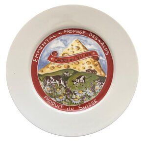 This set of four ceramic plates showcases charming cheese-themed designs, perfect for culinary enthusiasts and collectors. The detailed illustrations include Brie, Stilton, Emmental, and Parmigiano, adding a touch of elegance to any table setting or display. Crafted with precision, these plates are ideal for serving or decorative purposes.
