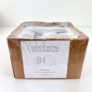 Pair of Restoration Hardware Estate Ball Finials. Finish is Oil-Rubbed Bronze. These are Medium-sized finals, for 1 1/4 inch diameter curtain rods. They are in their original box. Box has been opened to check contents but finials were never installed.