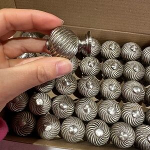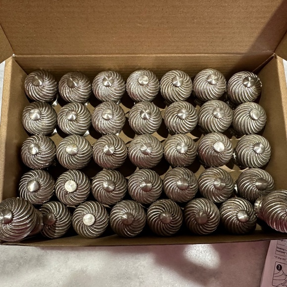 Stainless steel swirl pattern restoration hardware knobs. 36 total