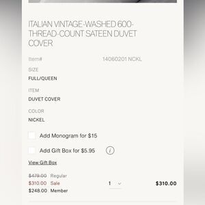Restoration Hardware ITALIAN VINTAGE-WASHED 600-THREAD-COUNT SATEEN DUVET COVER
