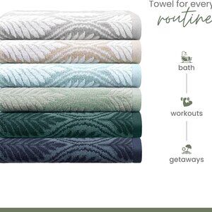 Features: This bath towel is the perfect mix of plush and practicality. Made with a cotton blend, it’s super soft, highly absorbent, and dries quickly. The elegant leaf pattern adds a touch of sophistication to your bathroom decor. Sized generously for wrapping yourself in comfort, with a handy locker loop for easy hanging.