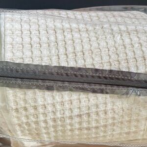 Enhance your bedroom with this elegant cream bedding set. Its soft texture and neutral color bring a touch of sophistication to any decor.