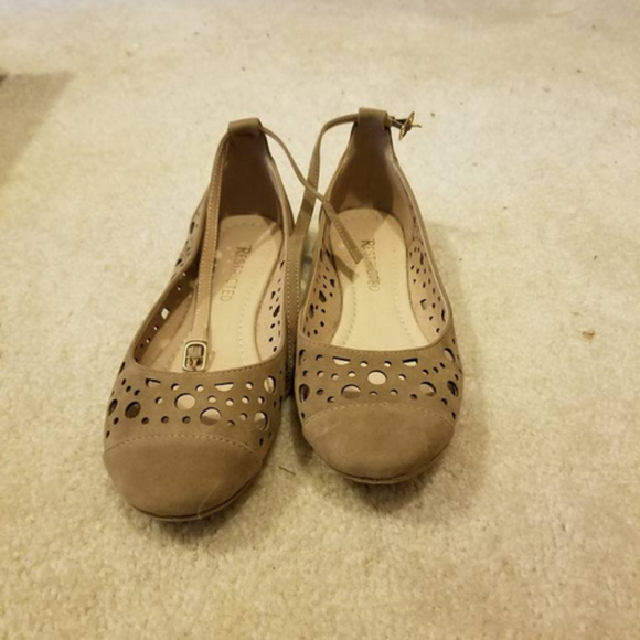 Never worn! Restricted tan flats with ankle strap. Size 6.5. True to size.