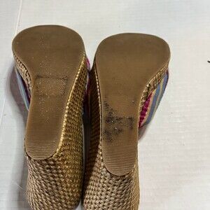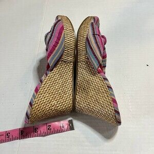 Restricted Tropicalcore Bohochic Pink/Purple/Blue Stripe Slide On Jute 3"Wedge 6