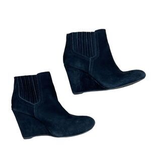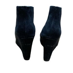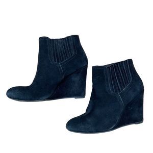Restricted Wedge Booties Leather Pull On in Black Suede Women Size 8 Winter Modern Casual Boots Pull On