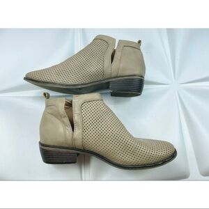 Restricted Women Sz 8.5 Taupe Perforated Bootie Ankle Boot Faux Leather Cut Out