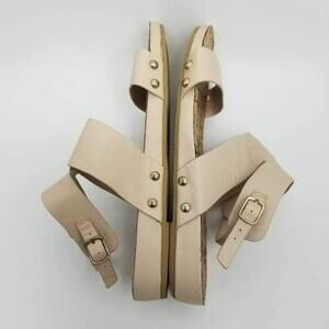 Restricted Womens Ankle Strap Sandals Beige Cork Buckle Studded 8.5