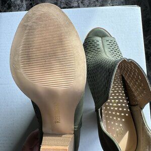 Elevate your shoe game with these Restricted peep-toe heels. The green color adds color to any outfit, while the 3-3.9 inch block heel provides a comfortable and sturdy fit. These shoes are versatile and stylish, perfect for indoor and outdoor occasions. The peep toe design and high heel height make them ideal for parties and cocktails, while the casual and AA shoe width makes them suitable for everyday wear. This shoe is a must-have for any woman's wardrobe.