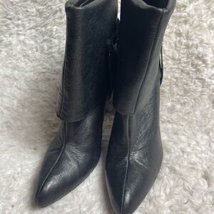 Restricted leather black folded ankle Boots heels pointed toe size 10.Pre owned in good used condition.normal wear.See all pictures any questions please message.B7