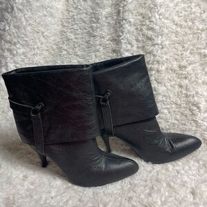 Restricted leather black folded ankle Boots heels pointed toe size 10