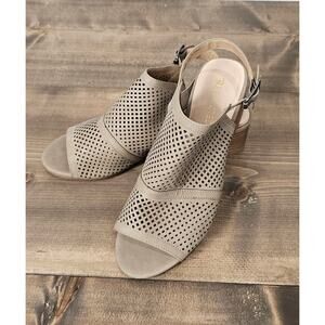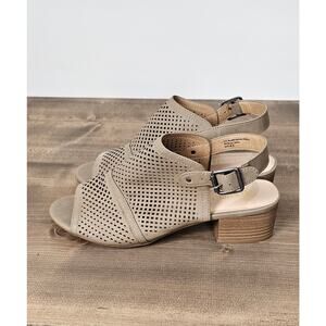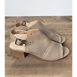 Restricted new sandals womens sz9.5 cutout peep ankle strap stacked heel taupe