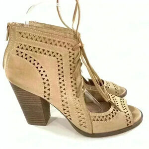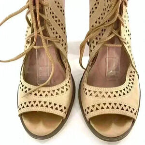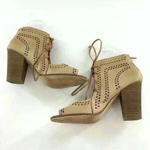 Restricted womens booties size 7.5 cream lace up laser cut Block heels