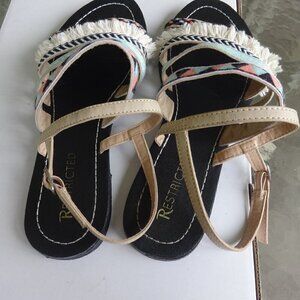 Restricted women's sandals size 8, aqua &coral, cream color top straps, bohemian