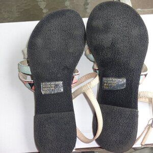 Restricted women's sandals size 8, aqua &coral, cream color top straps, bohemian