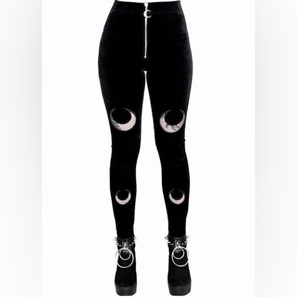 Get yourself an unique gothic look with the Double Crescent Velvet Leggings designed by Restyle.