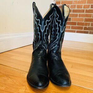 Retail $599 Justin Cowboy Boots Men's Style 8313 Black Lizard Exotic 10 1/2