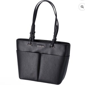 Retail:$498 Michael Kors Bedford Black Leather Medium Top Zip Tote Bag NWT