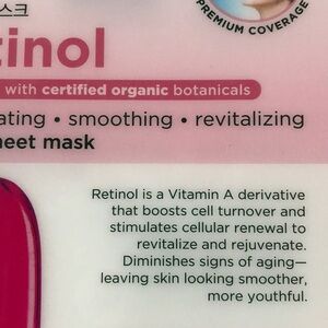 New, never used Retinol facial sheet masks. 5 in package. See pics for more description.
