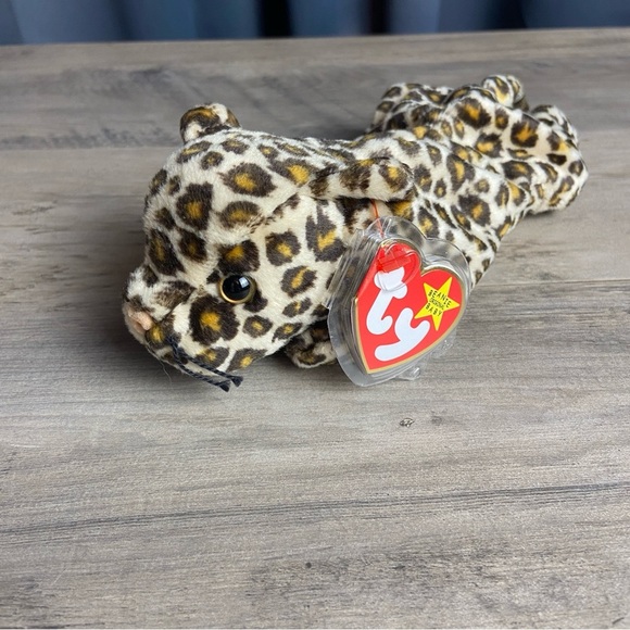 Charming leopard print Beanie Baby by Ty. Soft and cuddly design.