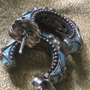 Retired Barbara Bixby Turquoise Enamel Hoop Earing