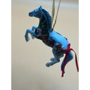 Retired and highly collectible 'Beary Merry Christmas' ornament from the Trail of Painted Ponies collection. This ornament is no longer available and a rare find. It is brand new, comes in the original tin, and the tin is autographed, adding to its uniqueness and value. Other recent listings for this ornament are priced at $110, making this a fantastic opportunity for collectors or holiday enthusiasts to own a piece of history. A perfect addition to your Christmas decor or a thoughtful gift for a Painted Ponies fan!