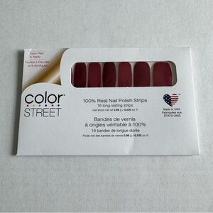 New in package Color Street nail strips. Retired “Bad Blood” is a shimmery scarlet perfect for Halloween.