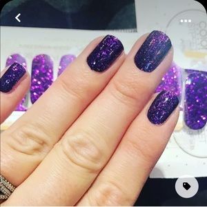 New in package Color Street nail strips. Retired “Ibiza Nights” is a glittery mix of purple and black.