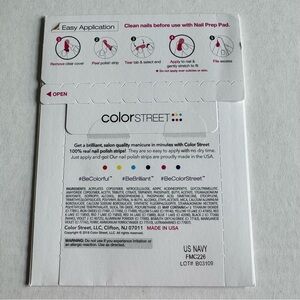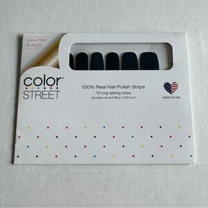 New in package Color Street nail strips. Retired “US Navy” is a deep, dark blue.