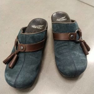 Retired Dansko Leather MULES: Blue W/ Brown Tassel: Women’s US 6.5 EU 37