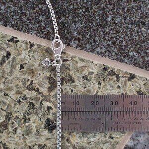 Necklace comes an attached & adjustable 16 inch to 17 inch 2 mm box chain with a lobster clasp.