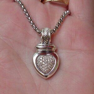 Retired David Yurman Diamond Heart Pendant w/Chain