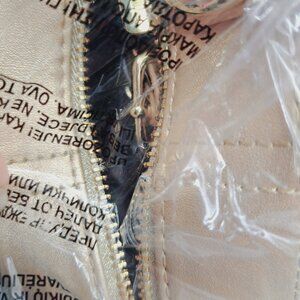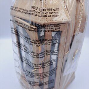 The exclusive Stitch Shoppe Tinker Bell Figural Lantern Crossbody Bag is made of metallic vegan leather (polyurethane). Bag has adjustable (detachable) shoulder strap and sturdy metal hardware. Additional features include applique, debossed, clear PVC, and printed details. Take note of the coordinating inside lining.