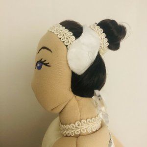 This is a retired ballerina puppet from Folkmanis. It was part of a collection of three ballerina puppets they had from famous ballets and this puppet is for Swan Lake and it is the character Odette. She measures approximately 15 inches tall and has an opening in back