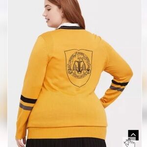 Embrace your Hogwarts house pride with this Hufflepuff cardigan. Featuring a vibrant yellow color and the iconic Hufflepuff emblem, this sweater is perfect for any fan. Stay cozy and stylish with this must-have piece.