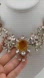 This J.Crew statement necklace features a gold-tone setting with a prominent central faceted yellow stone. It is surrounded by numerous clear crystals in various cuts, forming intricate floral or starburst clusters on either side. Additional clear crystals dangle below the central element. Please note there are scratches on the center stone. The metal finish shows light wear consistent with a vintage item.