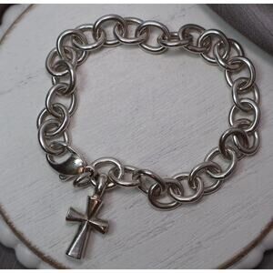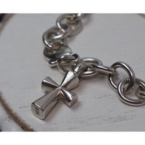 Retired James Avery 925 St.Terese L Cross Cable Chain Bracelet 29.8G/8in/9.5mm