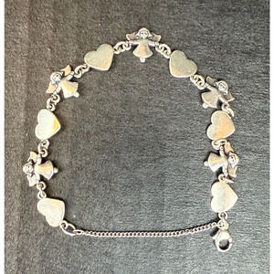 Retired James Avery Sterling Silver Heart and Angel Link Bracelet w/Safety Chain