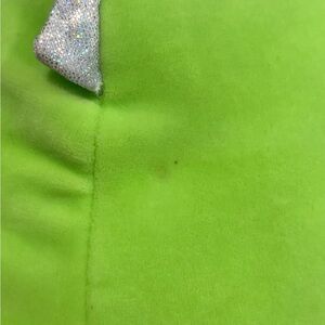 Desmund is a mint green dragon. His wing membranes, horns and the spikes on his back are all shimmering silver, while his snout, inner ears, and belly is white. He has two large black eyes.