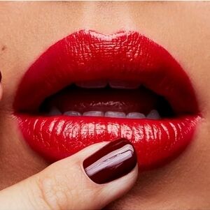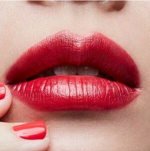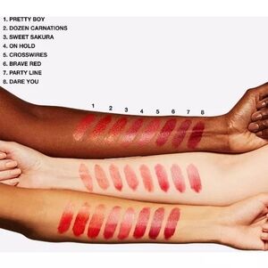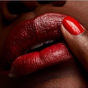 Retired MAC Sweet Sakura 233 presents a luxurious red with a soft gold pearl, in the signature cremesheen formulation for a semi-glossy finish.