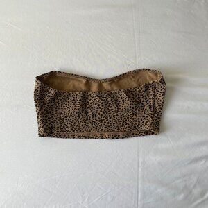 The animal print tube top of your disco fever dreams. 90% cotton, 10% spandex means you can skip a bra. Bust has a slight sweetheart wave, slightly lower in the back. The size listed is a S, fits more like a M