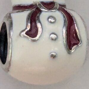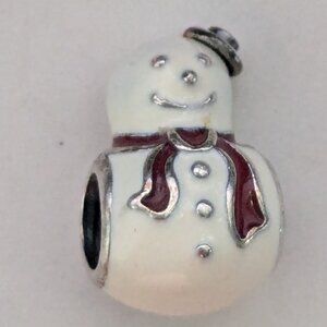 Retired PANDORA 925 ALE Smiling Snowman Enamel Bracelet Charm